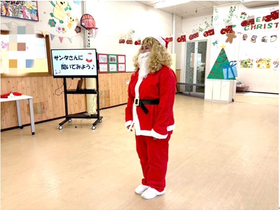 その後に「赤鼻のトナカイ」を歌い、楽しい雰囲気になったところでサンタさんを呼びました。