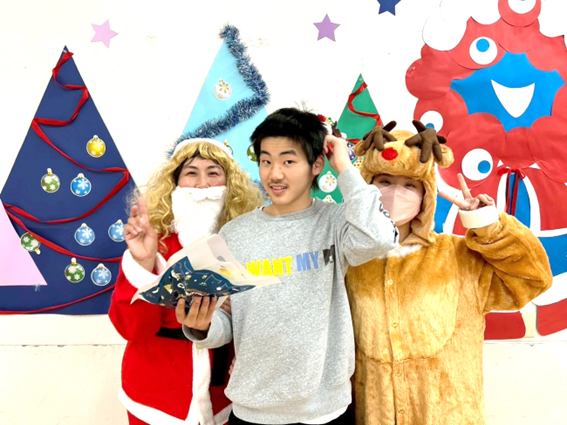 頑張ったみんなにサンタさんからプレゼントをもらい写真も撮りましたよ。