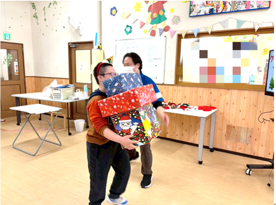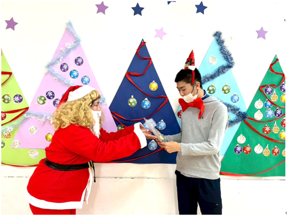 頑張ったみんなにサンタさんからプレゼントをもらい写真も撮りましたよ。