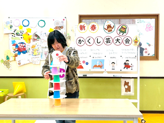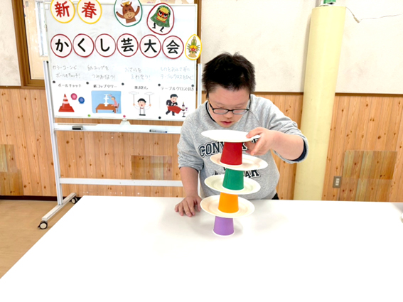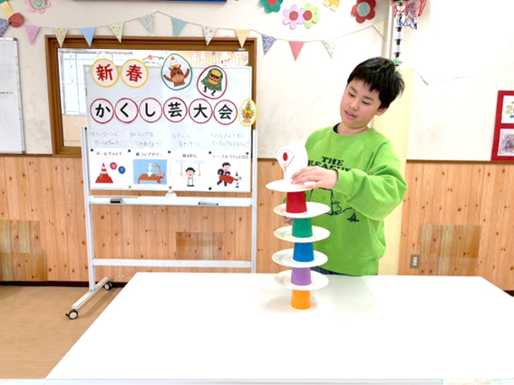 子どもたちに、好きな芸を選んでもらって挑戦してもらいます♪
